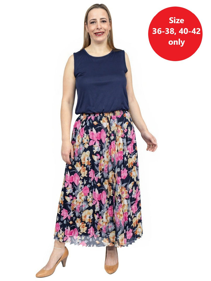 An elegant look for any occasion, This stunning pleated skirt, in a beautiful printed polyester georgette, is lightweight and soft to wear with elastic waist and lining from the waist. Available in two stunning prints for a stylish look.