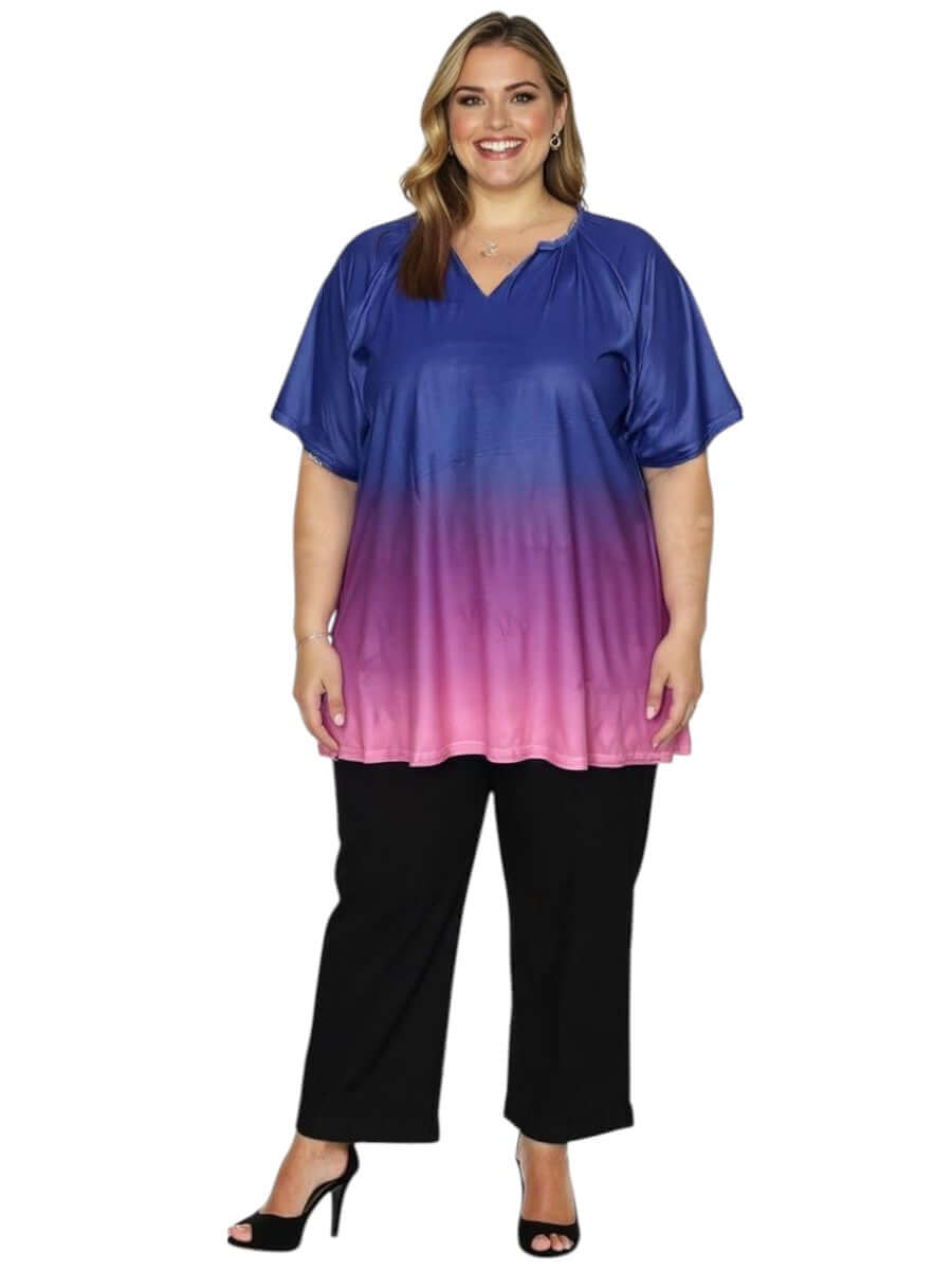 Your one-top shop for all your everyday Women's plus size clothing with tops, tees and blouses for all seasons and every occasion. From long sleeve, short sleeve, printed and plain plus size tops, in the latest fashionable styles and colours, to everyday tops and blouses for work, for going out or staying in. Unique, beautiful, stylish and designed with comfort in mind, to fit and flatter your curvy figure.