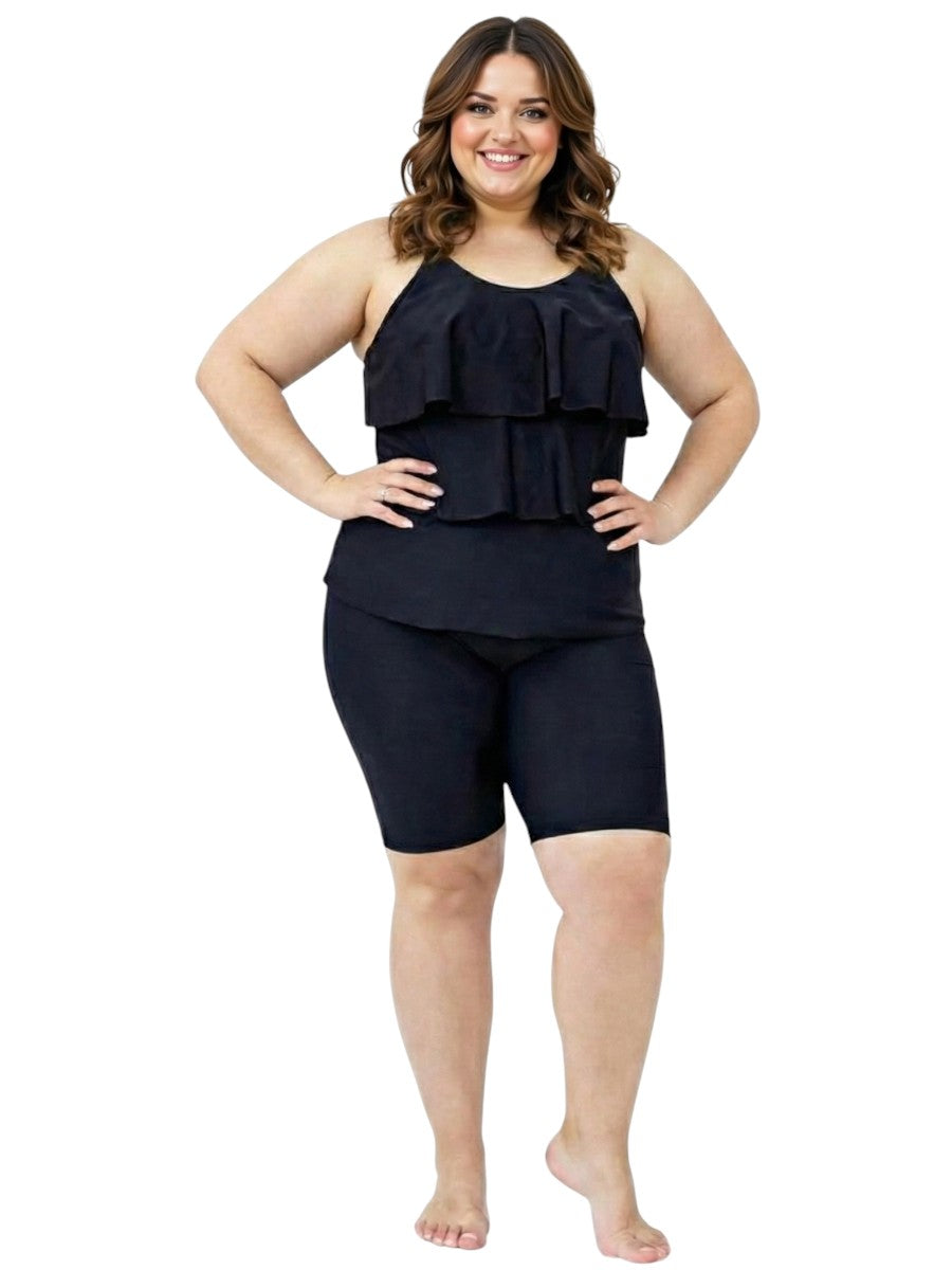 Black Swim Tankini Top with ruffled front