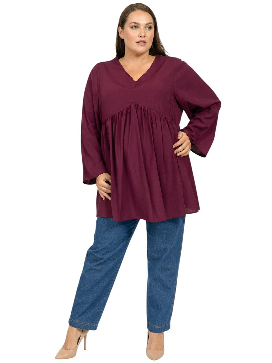 Dallas V-Neck Tunic - Wine Plus Size Tops Dale and Waters