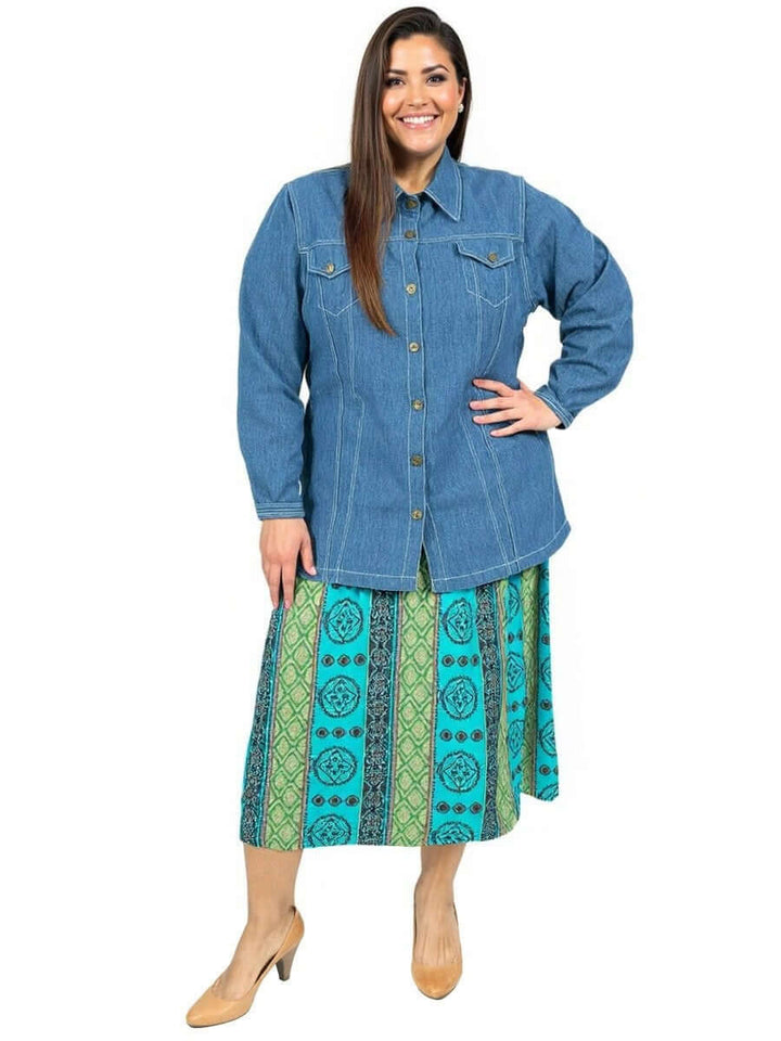 Lightweight, comfy, and oh-so-versatile, it features long sleeves, contrast stitching, and classic denim details.