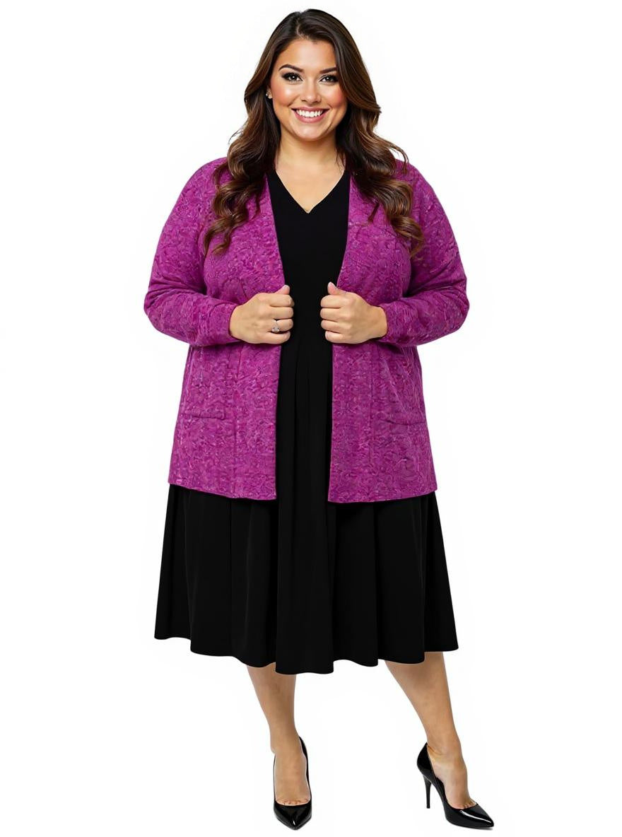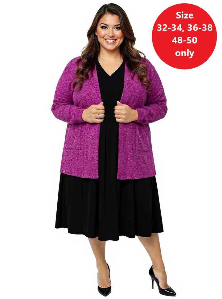Our popular edge-to-edge, plus size cardie is back. Available in three versatile colours, these gorgeously soft, comfy knitted cardies are ideal for those cooler days. Perfect to layer over any outfit, with long cuffed sleeves and patch pockets in the front it features side splits in the hem for a relaxed fit.