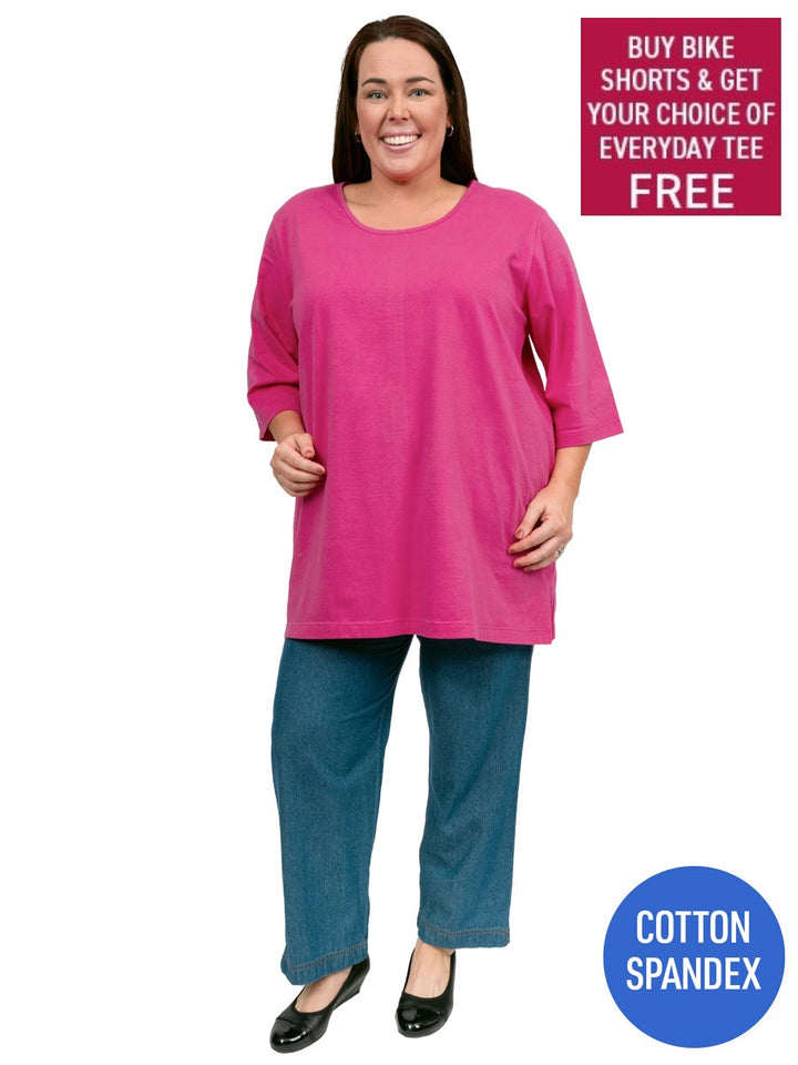 Everyone's favourite, everyday plain, plus size tees are back. Smart and comfy, these casual round-neck tees feature elbow length sleeves and side splits in the seams. Available in 10 fashion colours, they're a must for any wardrobe.