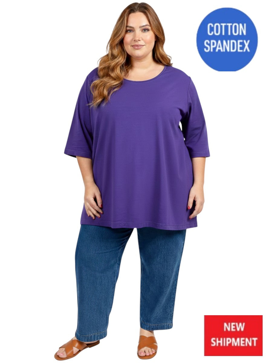Everyone's favourite, everyday plain, plus size tees are back. Smart and comfy, these casual round-neck tees feature elbow length sleeves and side splits in the seams. Available in 10 fashion colours, they're a must for any wardrobe.