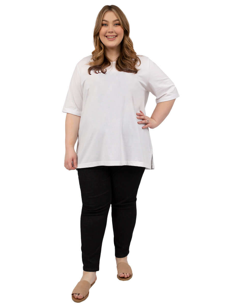 Everyone's favourite, everyday plain, plus size tees are back. Smart and comfy, these casual round-neck tees feature elbow length sleeves and side splits in the seams. Available in 10 fashion colours, they're a must for any wardrobe.