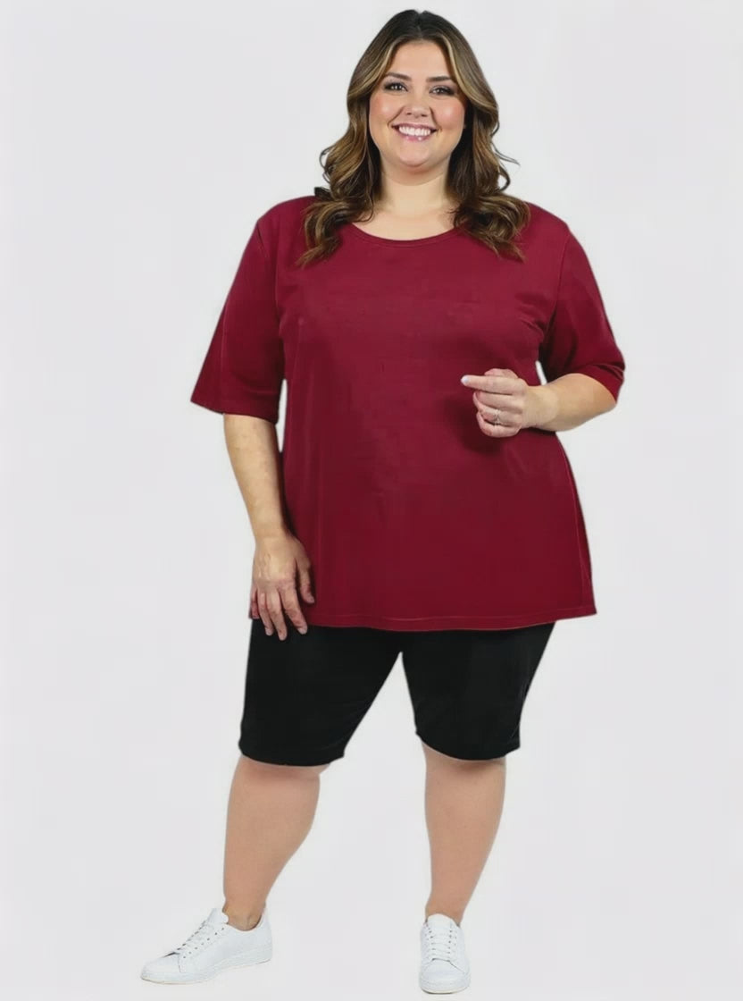 Everyone's favourite, everyday plus size, plain tees are back. Smart and comfy, these casual round-neck tees feature elbow length sleeves and side splits in the seams. Available in 10 fashion colours, they're a must for any wardrobe.