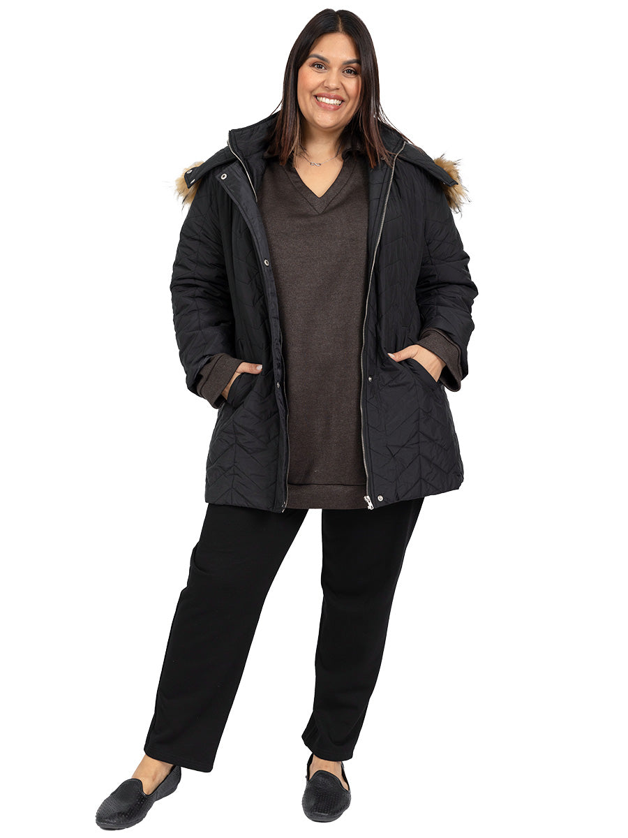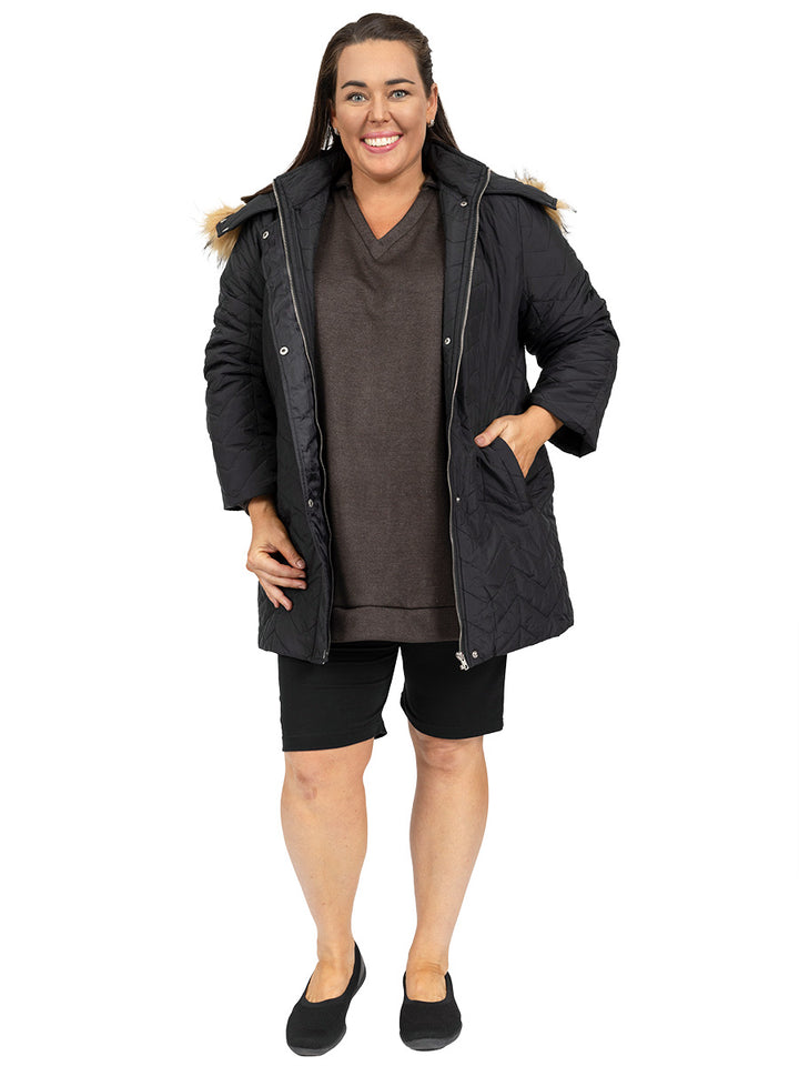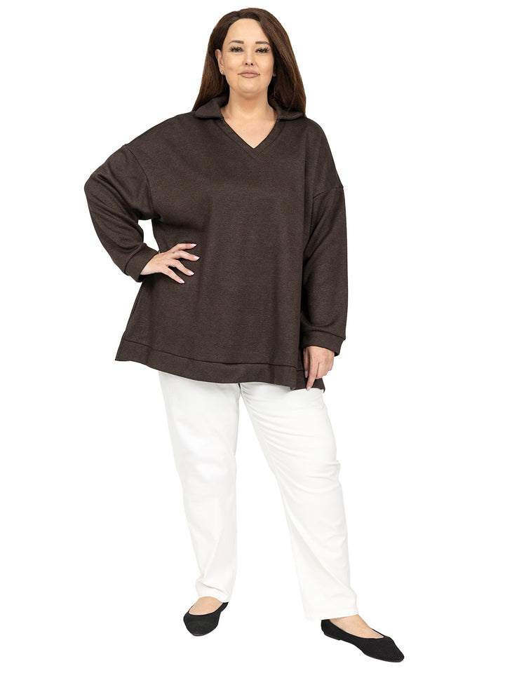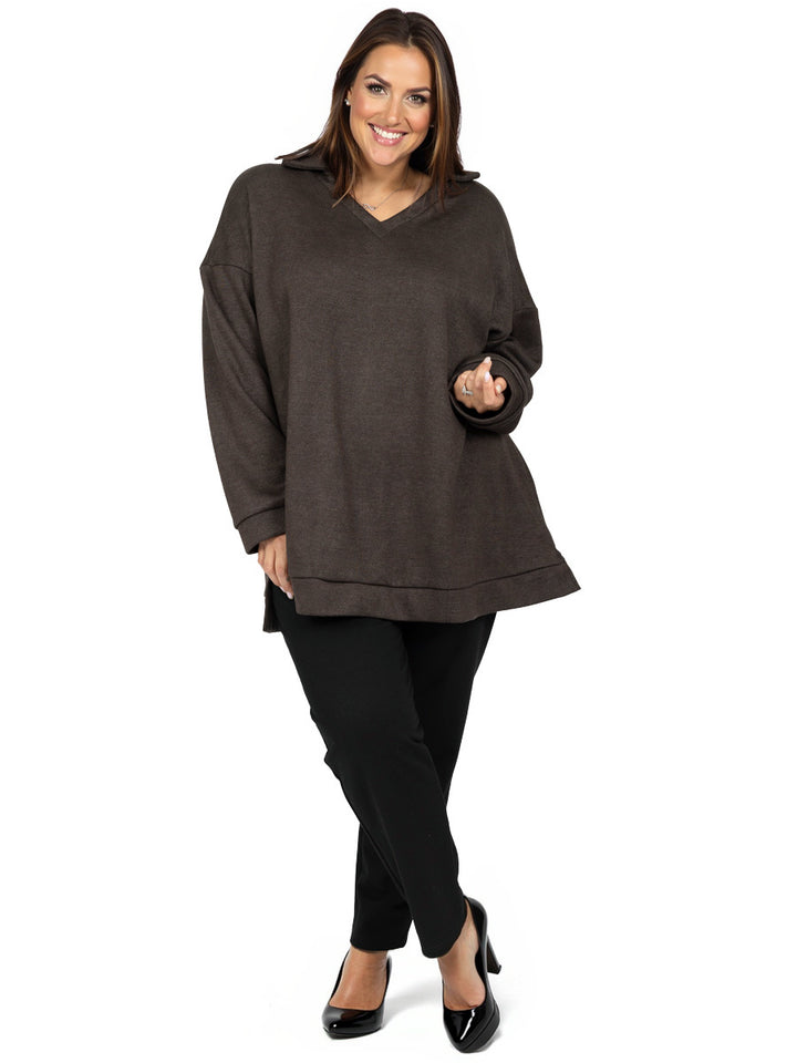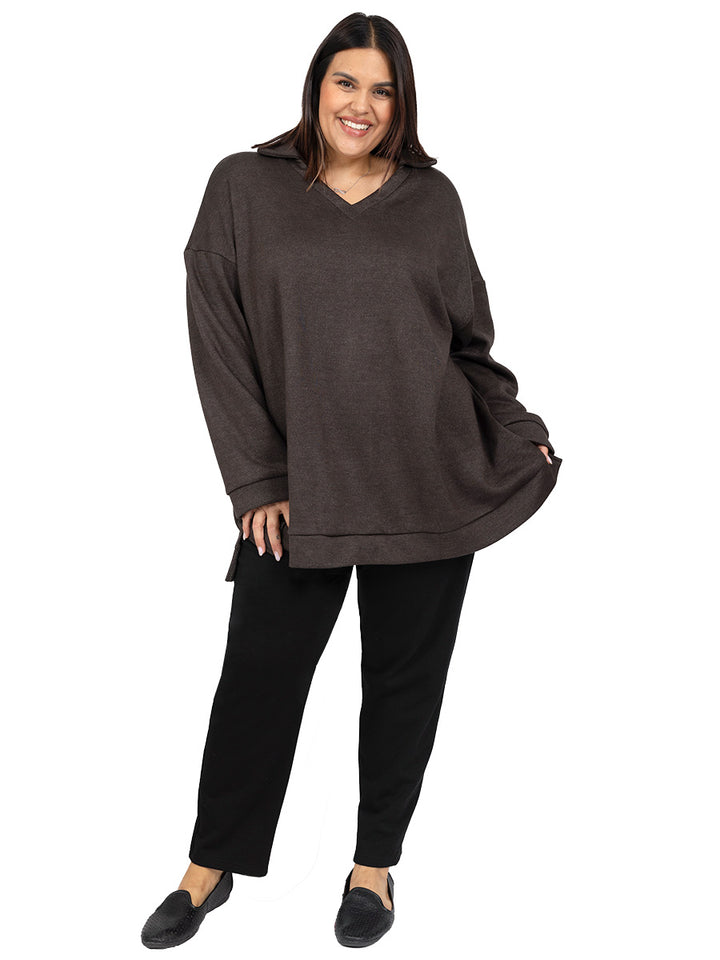 Wrap yourself in warmth this winter with our soft, cosy women’s plus size swing jumpers. A stylish blend of comfort and style, featuring v-neck with rib collar and long sleeves with cuffs and collar. With wide band and side splits in the hem for extra ease and movement, these jumpers are made to keep you cosy & snug. Available in Charcoal and soft Lilac, they’re your cold-weather essential.