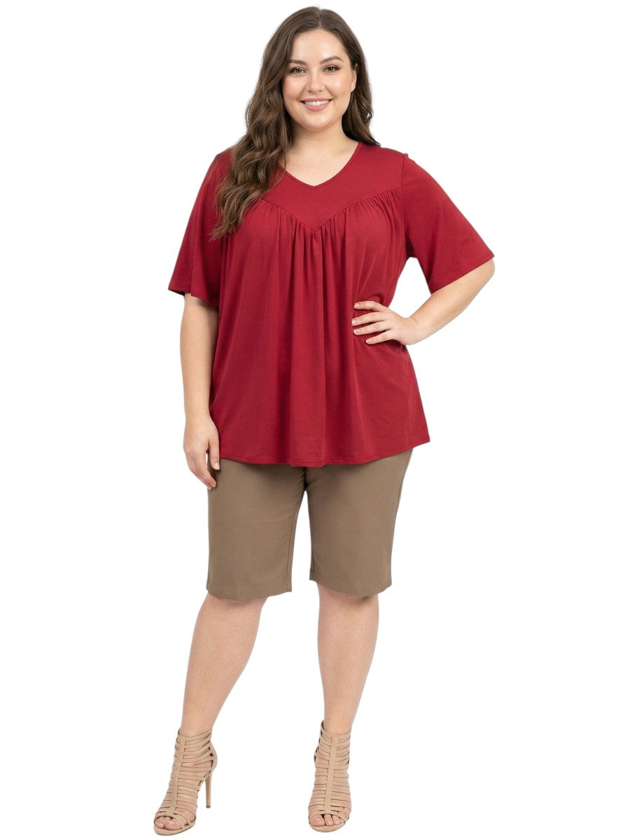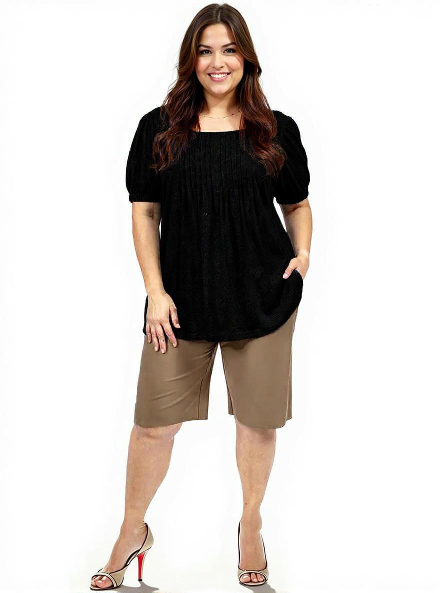 Stylish, flat front plus size shorts are a smart look for summer. Similar to the new Coleman Capris but with a shorter length, to finish above the knee. Versatile pull-on shorts are easy and comfortable to wear. Available in Taupe and Black, with flat-front elastic waist and side pockets. Perfect for those hotter days, you’ll want to live in them.