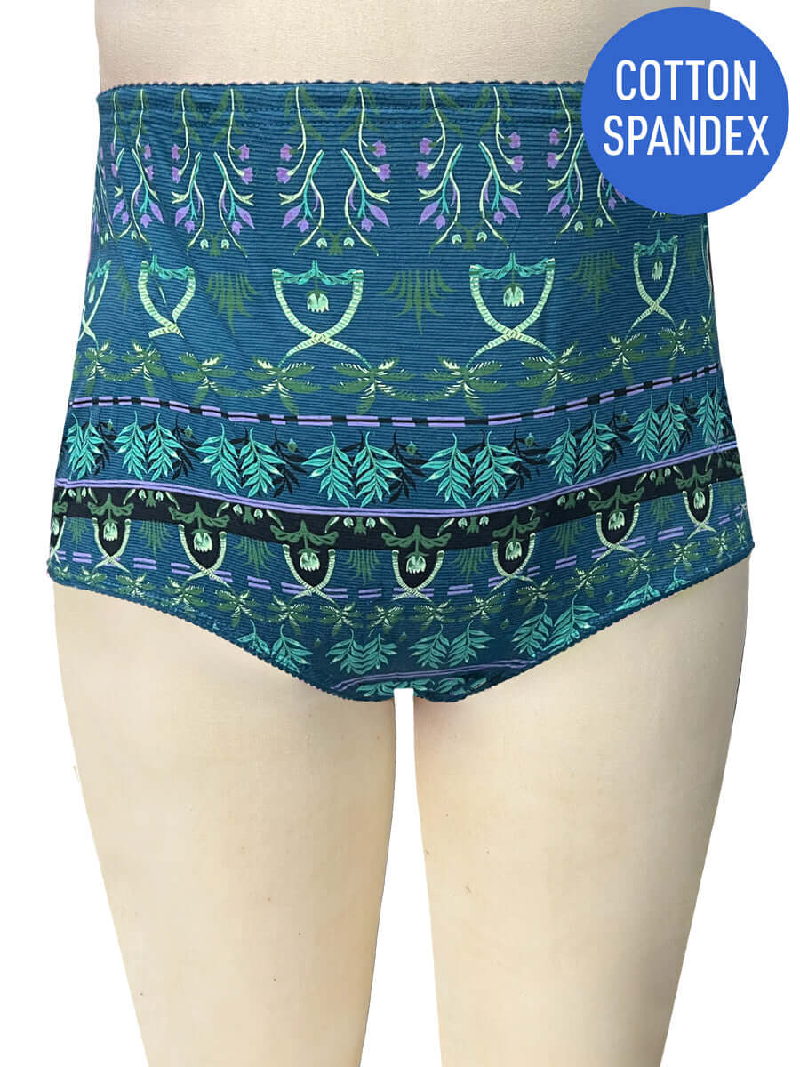 Full Briefs - BCS1026 Cotton Spandex - Teal/Aqua Print