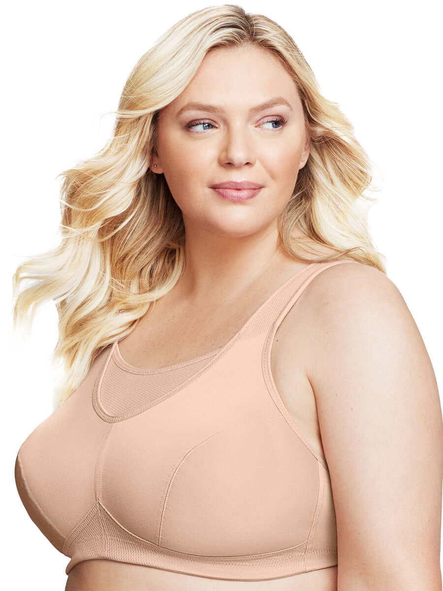 GL1066C Glamorise Plus Size Bra | No-Bounce Camisole Sports Bra in Cafe/Beige - Size 12-28, C - G Cup