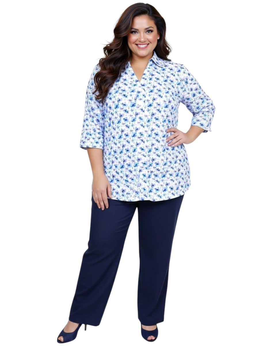 Effortlessly refined and breathable, this top is crafted from lightweight 100% polyester—perfect for warm days and laid-back sophistication.