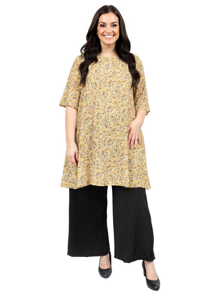 Lightweight and stylish, this round neck tunic is the perfect choice for spring. Featuring a round neck and elbow-length sleeves, it also has a button fastening at the neck for added detail.