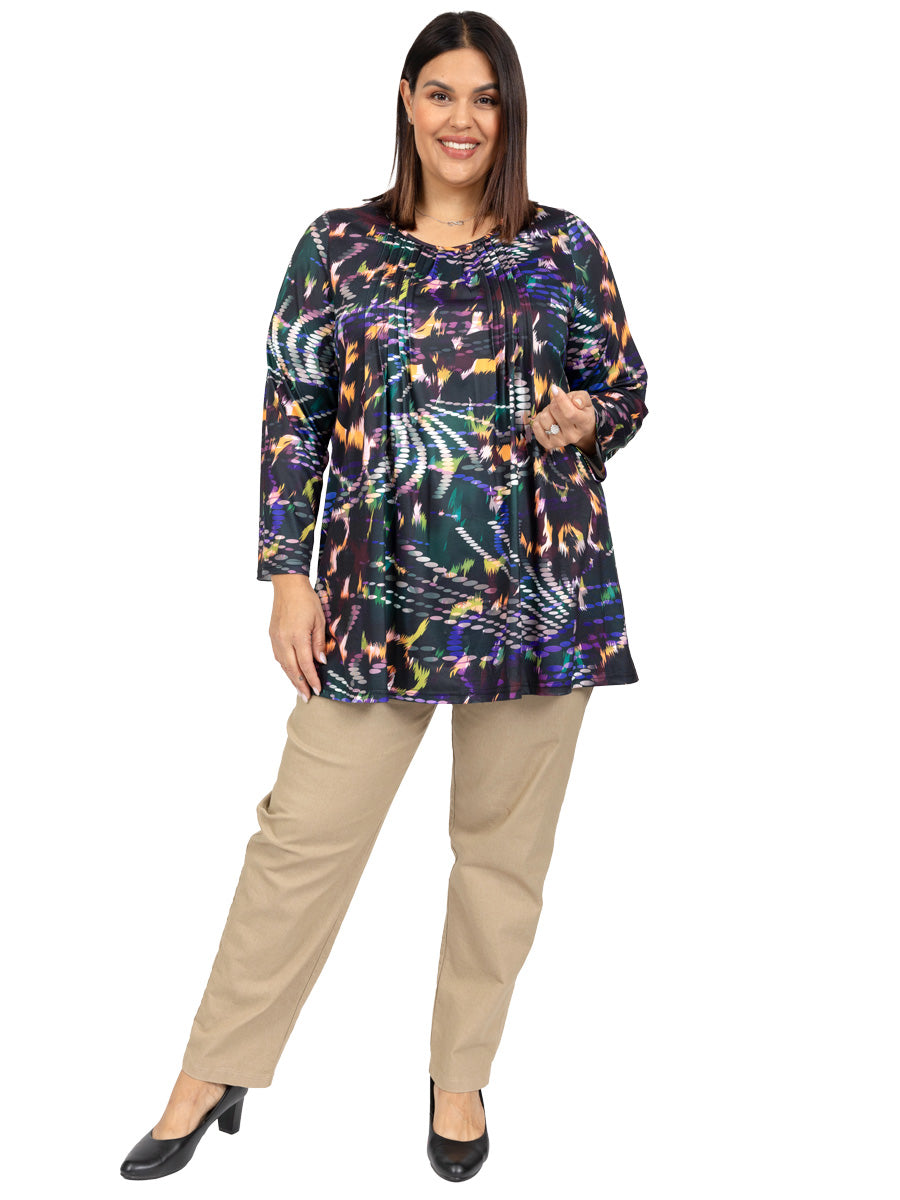 Take a break from black, these women’s Plus size stretch elastic waist pull up jeans are a smart, relaxed look for the warmer months. Based on our popular black denim jeans, they’re also available in olive green. With a flattering, fitted look it features elastic waist, front pockets and comfy two-way stretch.