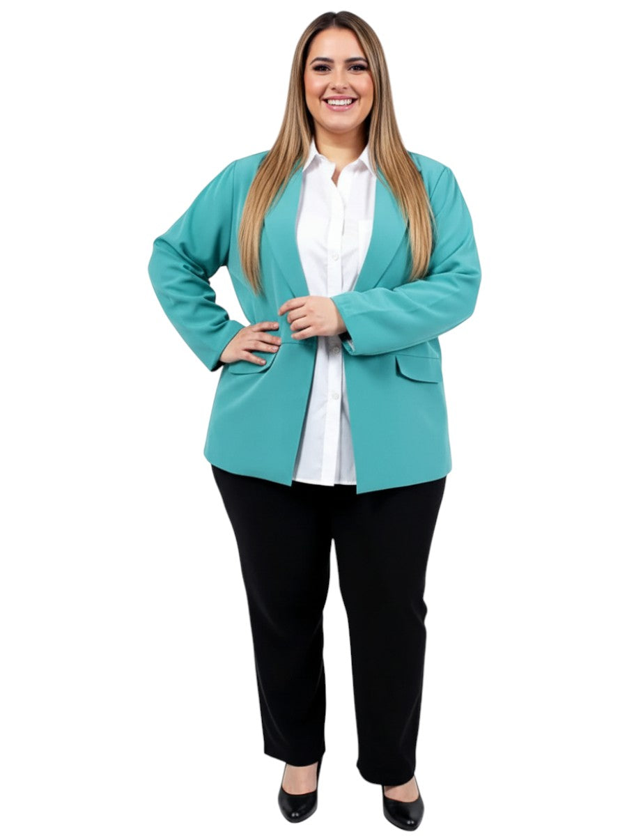 Smart, elegant, fully lined, long sleeve blazer in teal