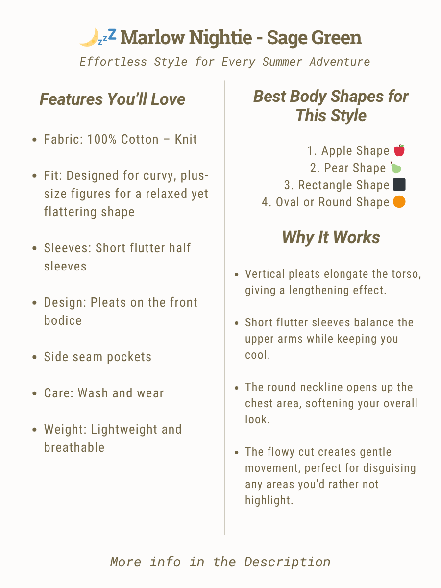 Designed with the curvy, plus-size woman in mind, this beautiful nightie combines comfort, movement, and everyday elegance. Made from 100% cotton, it’s naturally breathable, soft against the skin, and perfect for warm weather — keeping you cool, comfortable, and confident all day long.