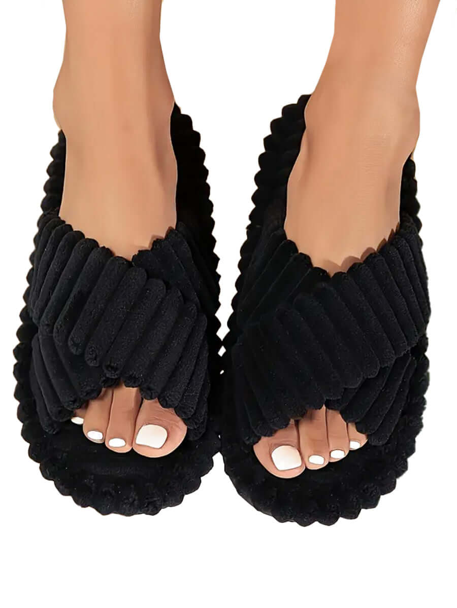 Ladies fluffy slippers are the epitome of comfort, in a cosy, plush softness for your feet. Made from luxurious plush fabric, these slippers provide warmth and comfort, making them perfect for relaxing at home