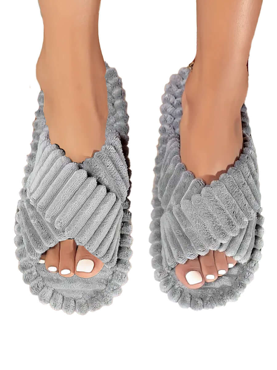 Ladies fluffy slippers are the epitome of comfort, in a cosy, plush softness for your feet. Made from luxurious plush fabric, these slippers provide warmth and comfort, making them perfect for relaxing at home