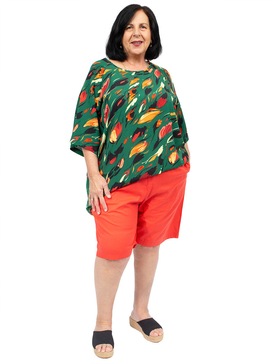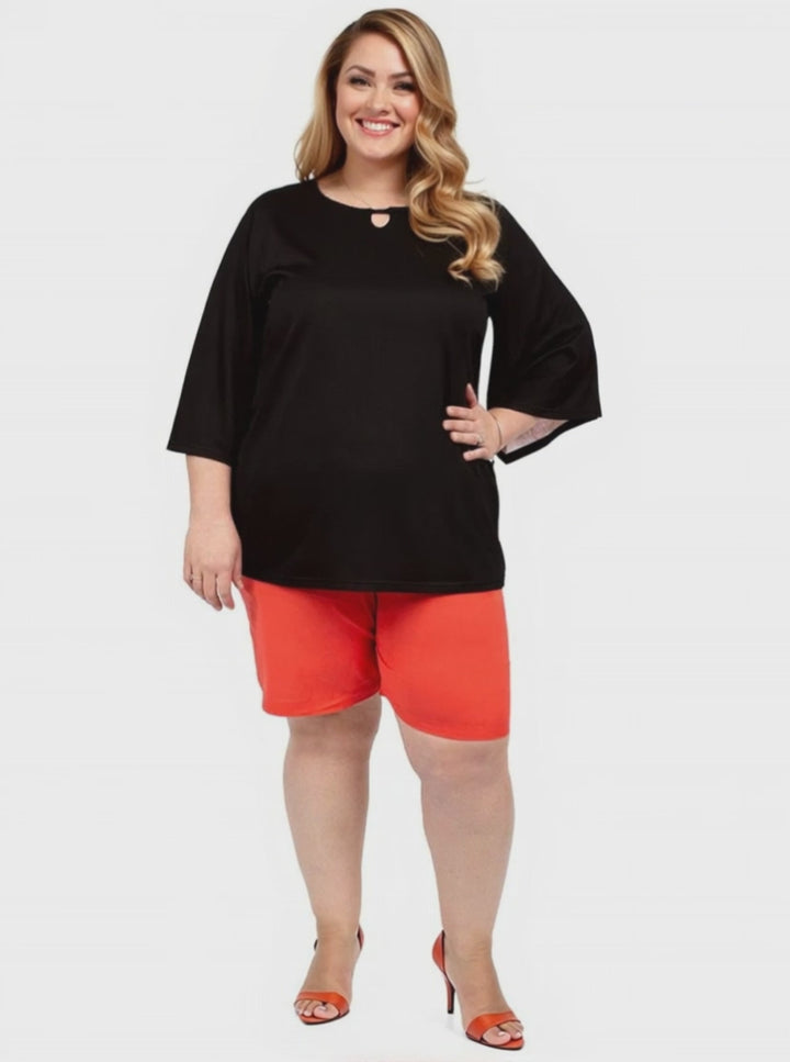 A cool and comfy look for summer, these beautiful, cotton linen plus size shorts are soft, lightweight and with elastic draw spring waist and pockets in the seams. Available in Coral and Black