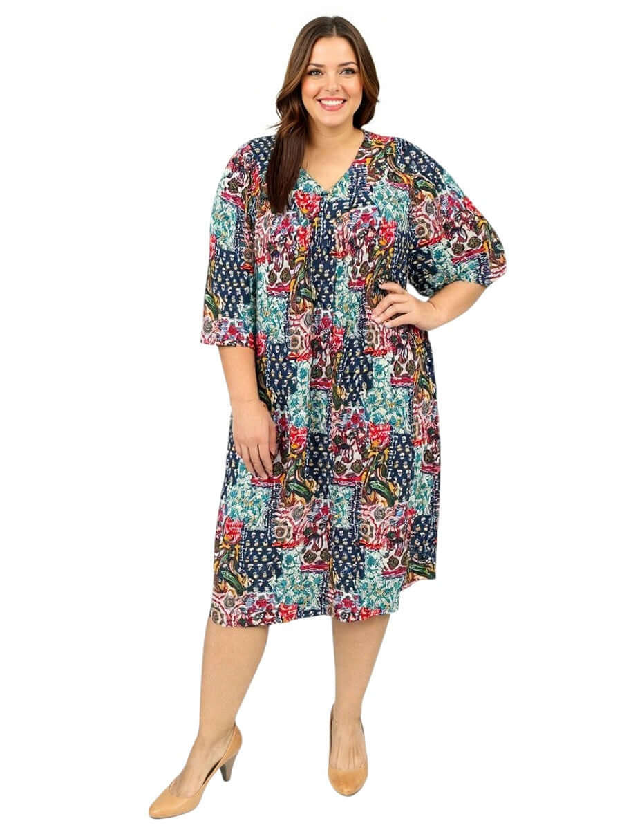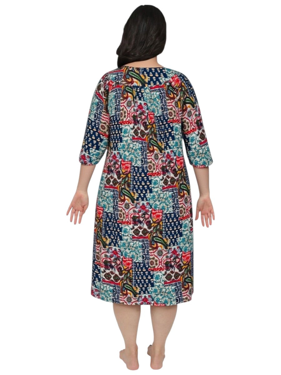 This stunning V-neck dress is crafted from 100% viscose, giving it that effortlessly soft, drapey feel that moves beautifully with you. Designed in a lightweight, breathable fabric, it's perfect for warmer days or layering across seasons. With 3/4 sleeves, a flowing silhouette, and a flattering 125 cm length, this dress strikes the perfect balance between comfort and elegance. Finished in gorgeous colours and standout print, it's the kind of piece that makes you feel instantly put-together - just slip it on and go.