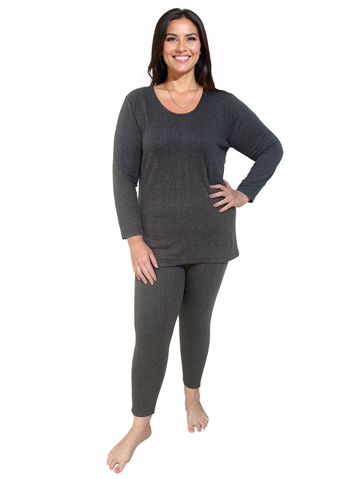 Soft and cosy, winter thermals are back. Lovely and soft, long sleeved women’s plus size thermal undergarment top in grey print. Wear it under your clothes for extra warmth, it’s perfect to keep out the chill. Team it with thermal leggings for extra warmth