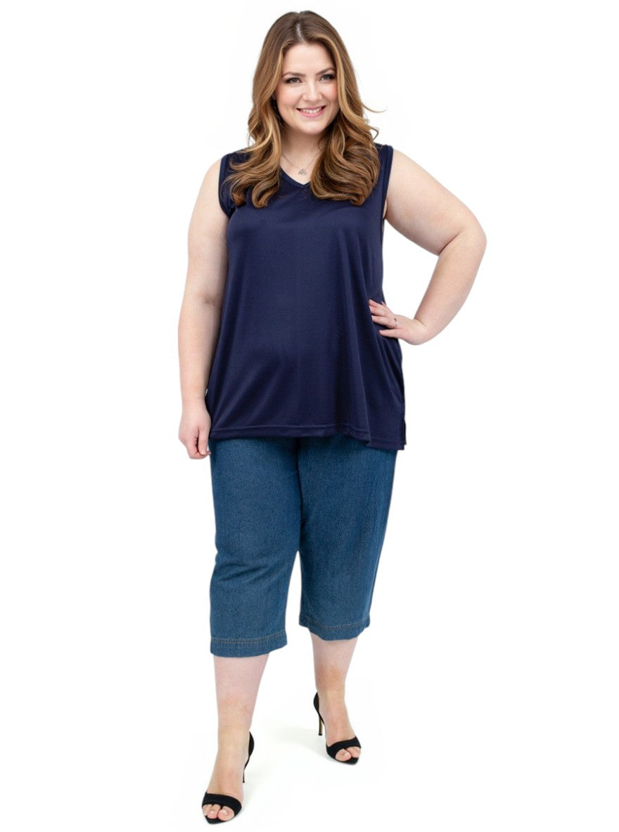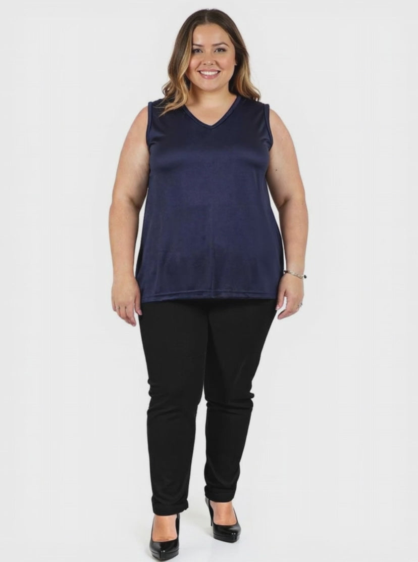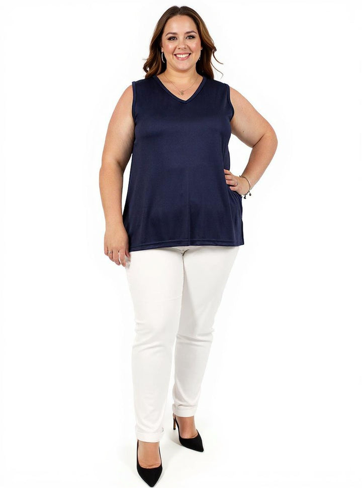 Our favourite, everyday camis are now available in a stylish V-neck. Comfortable and versatile, these sleeveless plus size v-neck camis are soft, light and easy to wear. Bound at the neck and armholes, with side splits in the seams. Available in Navy, Ivory & Black, they're perfect alone or under a blouse or jacket for a smart look for any occasion.