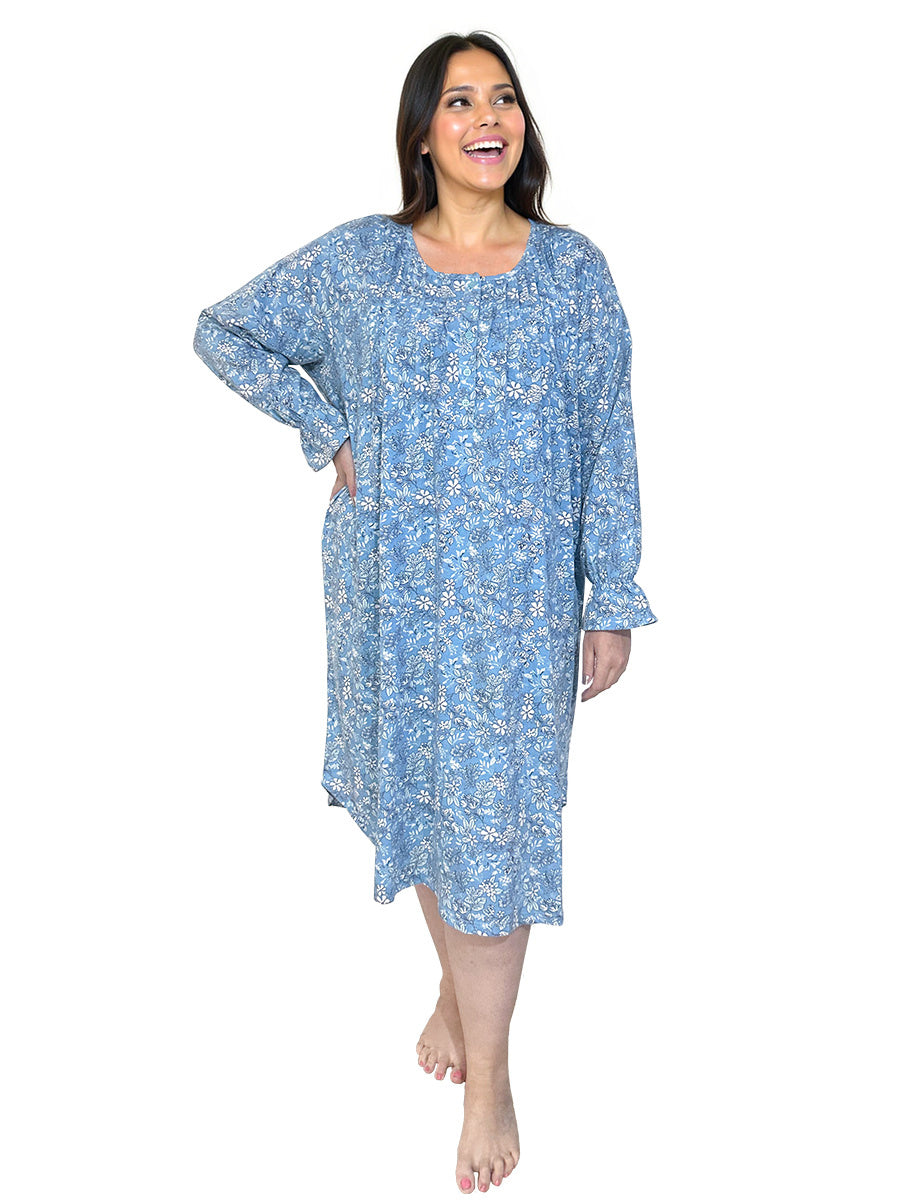 So soft and comfy, these stunning, printed plus size women’s pleated nighties pleated nighties are soft and comfy to wear. Lovely and breathable, for those relaxed evenings. Available in 3 stunning prints they feature pin-tuck pleated front with button front at the neck with long sleeves with elastic cuffs for a comfortable fit.